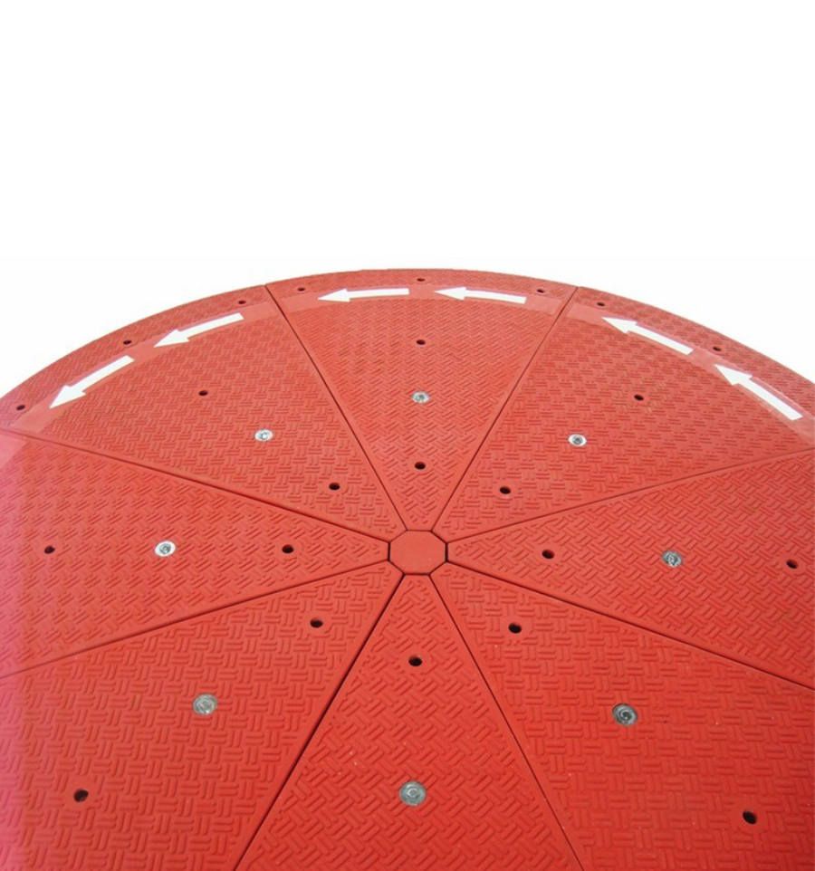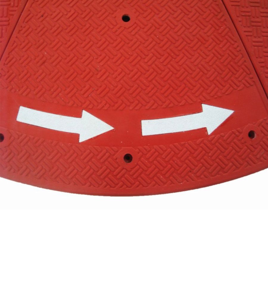 Il est équipé de 8 réflecteurs en son centre et possède des flèches directionnelles blanches indiquant aux personnes le sens de circulation dans un rond-point.