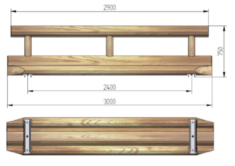 Il est composé d'une base en rondin de bois et rehaussé d'une main courante pour plus de visibilité qui peut également servir de barre d'appui. De plus, les véhicules ne peuvent pas franchir ce séparateur de voie.